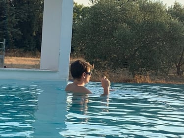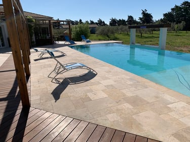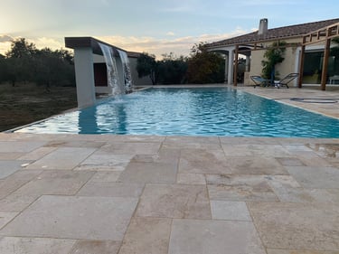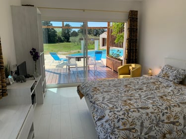 Au bord de la piscine ou juste avant votre chambre, du matin au soir, la cascade lumineuse vous aidera à vous relaxer en dégustant un bon verre, ou en profitant une vue paisible à l'avant de la chambre - lorsque le soleil illumine la piscine de 15 x 5 m avec une plage de 5 m qui vous permet de prendre un bon bain de soleil.